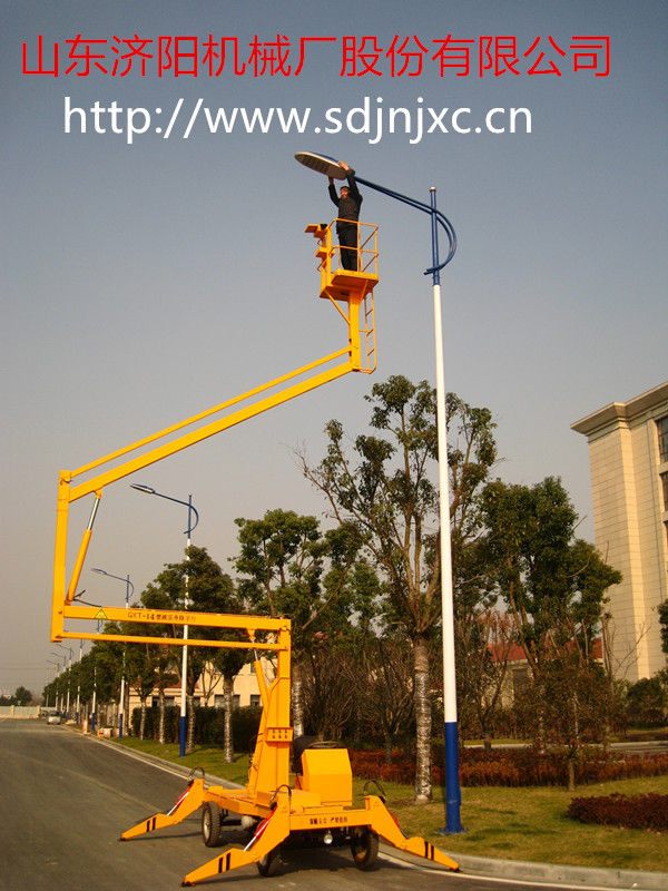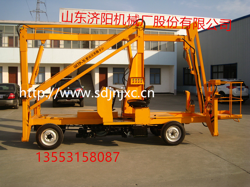 一、產(chǎn)品說明:曲臂式升降機(jī)是山東濟(jì)陽機(jī)械廠最新研制的高空作業(yè)設(shè)備,具有操作簡單體積小,重量輕,價(jià)格便宜,外形美觀、作業(yè)面積大、移動(dòng)方便,特別是能夠跨越障礙物進(jìn)行作業(yè)等優(yōu)點(diǎn)、是理想的登高作業(yè)設(shè)備。廣泛應(yīng)用與車站、碼頭、賓館大廳、倉庫、車間以及供電和建筑裝璜等部分需要高空作業(yè)的場合。
