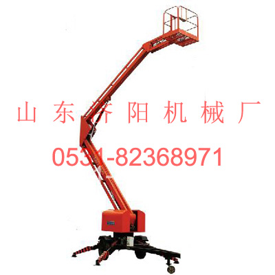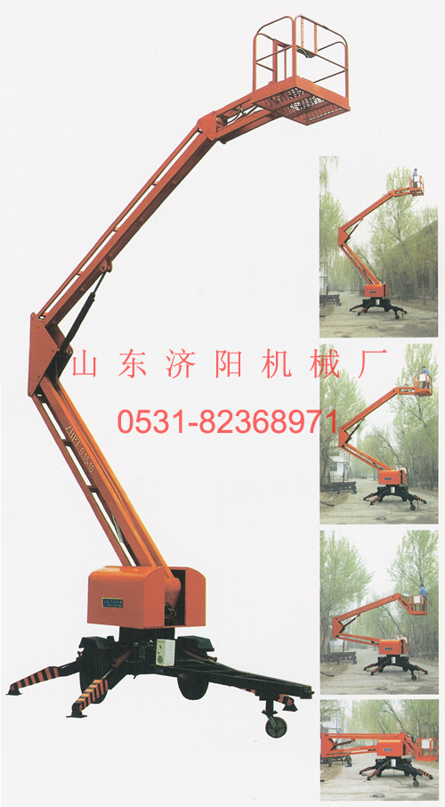 該系列升降機主要用于室外高空作業(yè)。折臂結(jié)構(gòu)緊湊,采用新型優(yōu)質(zhì)型鋼,強度高、重量輕、架設(shè)速度快,具有自動液壓支腿,工作臺既可升高又可水平延伸,還可旋轉(zhuǎn)??刹捎媒涣麟娫磫樱子诳缭秸系K物到達(dá)工作位置,是理想的登高作業(yè)設(shè)備。該系列升降機廣泛用于市政、電力、路燈、公路、碼頭、廣告、廠礦車間大范圍作業(yè)。